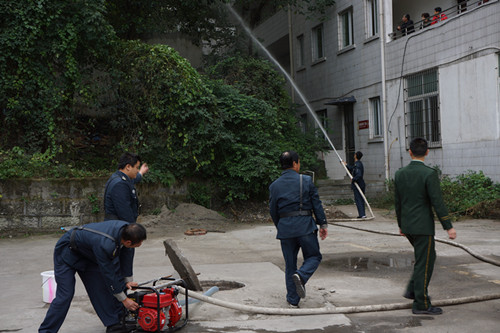 动员会后,由市消防支队大安区大队参谋熊文均向与会人员做了消防安全知识培训讲座。熊参谋就医院火灾危险性、火灾应急处置预案与流程等内容,以图片演示和播放火灾安全录像等方式生动、详细地进行了讲解,对提高医院干部职工的消防意识具有指导意义。在讲解中,大家进一步了解和掌握了如何预防火灾、如何扑灭火灾、火灾现场如何逃生等技巧。培训讲座结束后,医院还进行了消防安全疏散演练及讲授灭火器的正确操作方法。安全疏散演练预想了医院实习生宿舍楼因电源线路老化导致线路起火,起火宿舍无人,被临舍人员发现火情后立即拨打了医院微型消防站值班电话请求救援,值班人员接到火险报警后立即报告了总值班、保卫科和119消防指挥中心,并迅速组织人员进行疏散,同时使用灭火器和消防高扬程水泵进行灭火。灭火后立即清理人员物资并上报医院及各级主管部门。随后,还进行了消火栓和灭火器的操作使用演练。