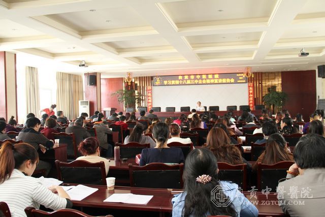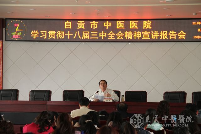 同时,会议要求全体党员干部要认真学习贯彻,全面准确把握三中全会精神。一要充分发挥领导干部的表率作用,坚持全面系统学、追根溯源学、与时俱进学,认认真真研读总书记讲话和《决定》原文,力求先学一步、学深一步,做主动学习者、自觉实践者、模范贯彻者。二要把学习贯彻十八届三中全会精神作为医院党委今后一段时期的一项重要工作,作为教育实践活动学习教育环节和建设学习型党组织的重要内容。三要要坚持学以致用、用以促学,把学习贯彻三中全会精神与党的群众路线教育实践活动结合起来,与中医医院持续改进活动、服务百姓健康行动相结合,与全面完成年度目标任务结合起来,按照市委要求和医院工作部署,深入学习,在领会十八届三中全会精神实质上动脑筋,在理论联系实际、切实推动工作上下功夫,不断推动教育实践活动扎实深入开展,以更加饱满的热情、更加昂扬的斗志,为医院科学发展做出贡献。
