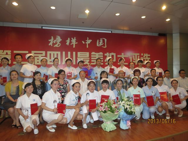 6月16日下午3点,由华西都市报主办的“榜样中国—第二届四川最美护士”评选颁奖典礼在四川报业集团新闻大楼二楼多功能厅举行,我院檀木林分院门诊办公室副主任护师张幼梅以排名第四的成绩获得“四川第二届十大最美护士”称号。