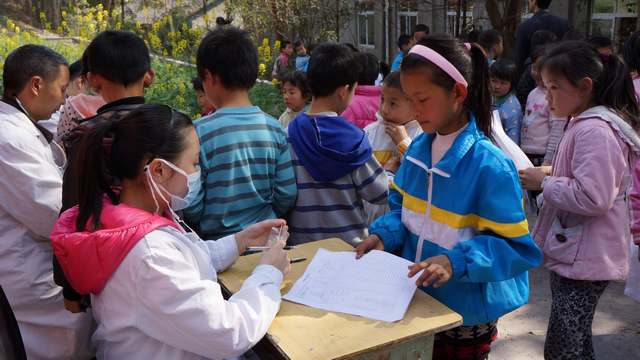 志愿者们一边为孩子们称体重、量身高,一边与孩子们亲切地聊天,了解孩子们健康状况,志愿者们虽然都穿着白大卦,但孩子们却觉得他们就像自己的大哥哥、大姐姐。在测肺活量的检查前,孩子们更是争先恐后地抢着检查,觉得既新奇又好玩,但许多孩子因方法不对不能很好地配合检查,志愿者总是耐心地跟孩子们讲解示范。来自口腔科的志愿者不厌其烦地向孩子们重复着保持口腔清洁及爱护牙齿的方法等保健知识,到最后孩子们是学着志愿者拿腔拿调地跟着说,惹得全场欢声笑语一片。内科及儿科的医务志愿者们拿着听诊器为孩子们认真检查,发现异常及时与学校教师沟通,并嘱咐一定要带孩子们到医院进一步检查确诊。在检查出两例患先心病的儿童时,志愿者们还积极向教师及孩子宣传国家关于该疾病治疗的相关政策,赢得了学校教师及学生们的一致好评。最后,体检活动在孩子们的笑声中圆满结束,孩子们还表示要向叔叔、哥哥、姐姐学习,也要做个“小雷锋”。