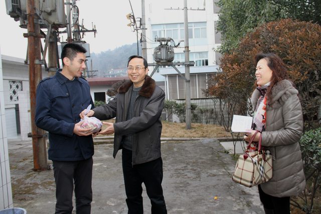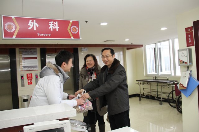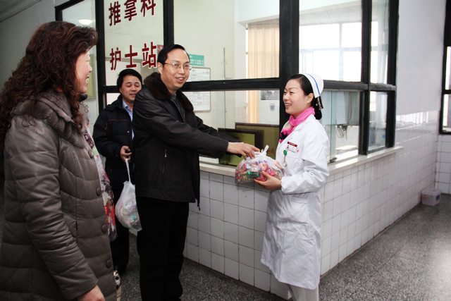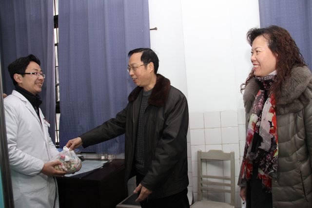 “新年好!同志们辛苦了!给大家拜个早年!”每到一处,院领导们都热情地与各部门工作人员一一握手,向他们致以新春佳节的美好祝愿,并送上了医院为每个职工精心准备的慰问品。
