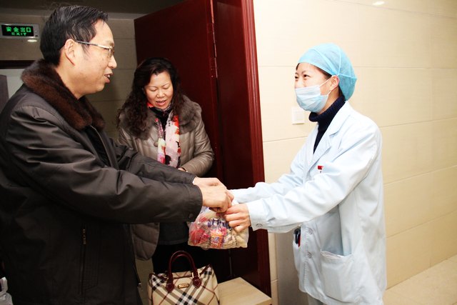 2月9日上午,院长杨正春、副院长王荧、郭永清、高冰在院办等相关部门负责人的陪同下,兵分两路赴院本部及分院,深入临床一线和后勤保卫等部门亲切看望节日期间在岗值班的工作人员,向大家送上最诚挚的问候和新春祝福。