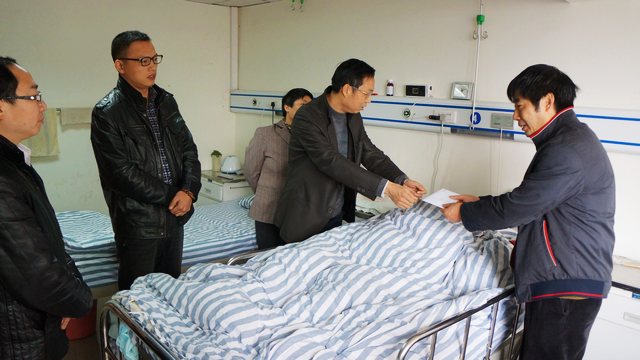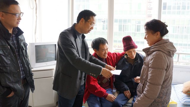 走访慰问中,院领导与困难职工罗建群、朱永芳及彭玉仙的家属进行了亲切的交谈,细致入微地关心他们的生活与健康状况,鼓励他们要树立战胜疾病的信心,早日康复,大家一起克服困难,共渡难关。在慰问劳动模范何爱国时,院领导对何爱国主任为医院建设与发展作出的贡献表示感谢,并表示以后要多选树这样的榜样,引导全院职工学先进、赶先进、争当先进。