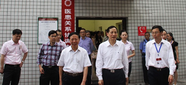 谢明道在市政协主席潘泽金、副市长石岷嘉等的陪同下视察我院马冲口门诊部