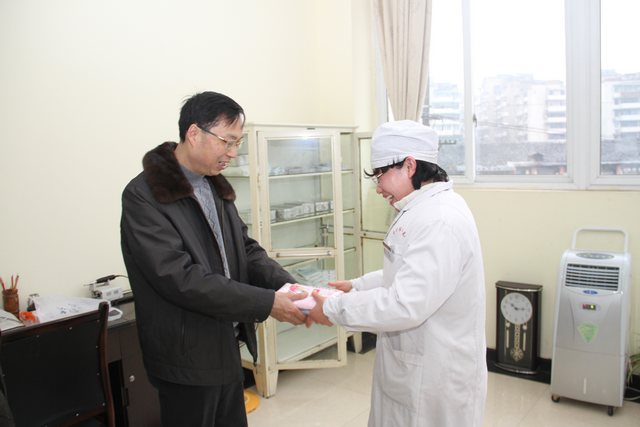踏着春天的脚步,我们迎来了又一个“三八”国际劳动妇女节。3月8日上午,医院早早的发送祝福短信到每位女职工的手机上,并将医院大楼门前的电子显示屏换上了祝福标语,祝福她们身体健康,节日快乐!同时,院长杨正春还率领导班子成员及相关职能部门负责人一起逐科看望慰问了工作在临床一线、行政、后勤的女职工。每到一处,领导们都亲切地和她们握手交谈,并送上毛巾表达节日的问侯与美好的祝福,同时感谢她们一直以来的辛苦付出和无私奉献。由于工作的特殊性,医院女职工通常面临着节假日不能休息,24小时轮班的工作制度,辛苦程度不言而喻,但为了患者的健康与医院的建设和发展,她们依然日复一日坚守在自己的工作岗位上。