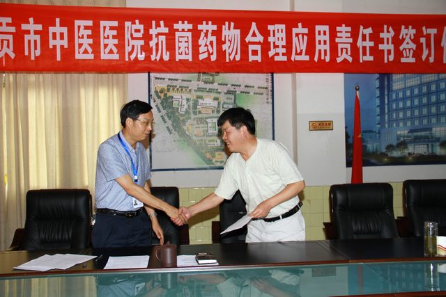 杨正春院长分别与每位临床科室负责人签定《抗菌药物合理使用责任书》,并要求各科必须强化抗菌药物合理应用的意识,逐步降低我院抗菌药物的使用率。