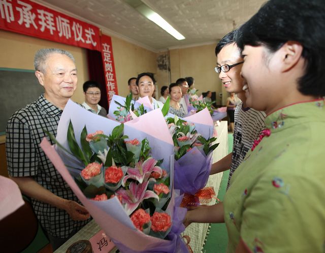 仪式在欢快的音乐声中进行,首先由学员向老师敬茶、献花、宣读拜师贴,然后行拜师礼,向老师深深三鞠躬,老师则通过“师训”表达了对学生的期望和要求。师徒双方签署为期3年的师承协议。