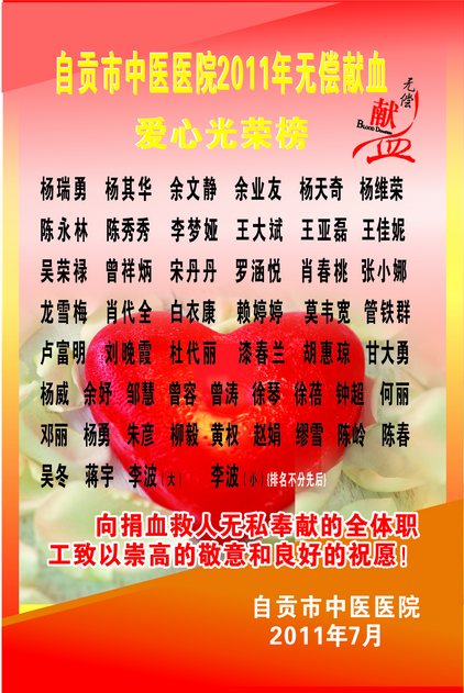 近日,我院组织职工参加2011年度无偿献血活动,广大职工表现出极高的热情,积极响应,主动到医教科登记献血。