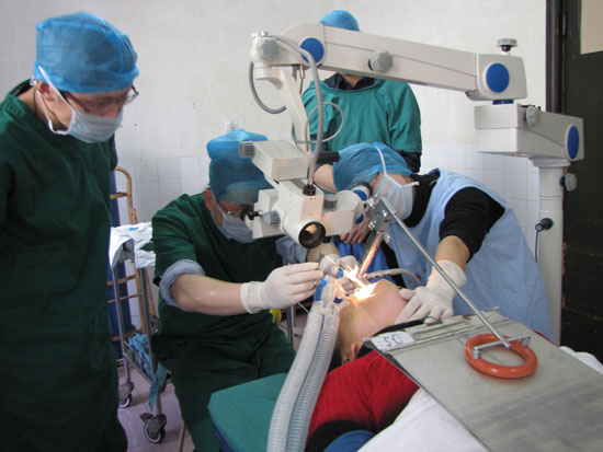 近日,我院五官科刘松涛主任带领下成功为一名杨姓女患者实施了支撑喉镜下双声带新生物切除术,这是我院首次在显微镜下实施此类手术。
