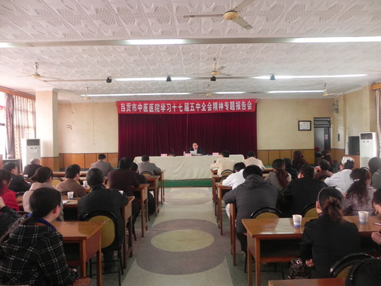 为更加深入地学习贯彻十七届五中全会精神,3月18日下午,我院在五楼学术报告厅举办了学习十七届五中全会精神专题报告会,特邀请了原市委宣传部部长邱德峰同志作了题为《深入学习领会五中全会精神,开创自贡科学发展新局面》的专题报告,报告会由院党委书记熊骥主持,医院全体党员和入党积极分子120余人参加了大会。