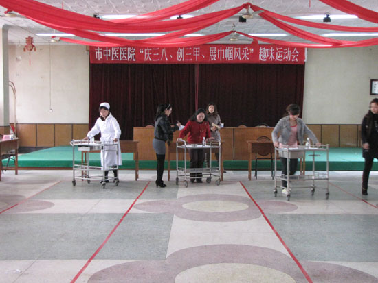 “加油!加油!” 3月7日下午,我院学术报告厅内人头攒动,热闹非凡。为庆祝101个“三八”妇女节的到来,丰富女职工的精神文化生活,结合创“三甲”工作在全院如火如荼的开展,院女工委组织了以“庆三八,创三甲,展巾帼风采”为主题的趣味运动会。