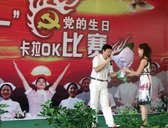 6月30日,在医院学术报告厅举行了庆七一卡拉OK比赛。来自七个支部的21名选手参加了此次比赛。参赛的曲目都是经过选手们认真挑选、精心准备的,选手们以最佳状态投入比赛,展现自我。他们用歌声为祖国祝福、为党祝福、为我们的和谐明天祝福。整场比赛气氛活跃、高潮迭起,场面非常热闹。最后,外科支部的李珍珍等十位同志以独特的演唱技巧和观众亲和力获得医院十大歌手称号。
