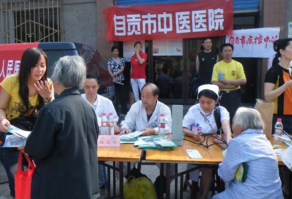 为配合巿卫生局开展“自贡巿卫生下乡进社区宣传服务活动”,5月21日,我院积极响应,组织医护人员到贡井区长土镇进行义诊活动。此次活动医院共组织四名医疗专家为现场群众提供诊疗、咨询服务,并免费为群众测血压、针炙按摩理疗、派发宣传单及健康教育资料等,受到当地群众的热烈欢迎。此次活动共接受诊疗、咨询150余人次,免费测血压120余人次,发放宣传单及健康教育资料300余份。