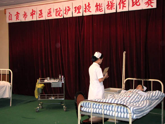 近日,我医院举办了2009年护理技能操作比赛。比赛项目包括:铺备用床法、毫针刺法。来自该院临床一线科室的28名青年护士参加了比赛。通过激烈的角逐,有6人以精湛的护理操作技术、良好的沟通技巧、沉着冷静的心理素质获胜。