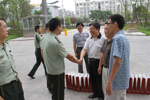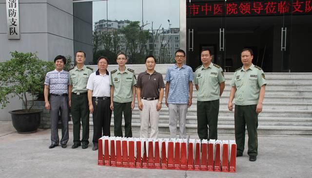 7月28日上午,在建军84周年前夕,市中医院党委书记熊骥、副院长高冰、调研员郭玉明等一行6人带着全院广大干部职工节日的问候和良好的祝愿先后来到自流井区武装部、市消防支队,与他们共叙军民鱼水深情,并为他们送去了金银花等价值两千多元的清凉药品,在炎炎夏日为亲人子弟兵送去一丝清凉,感谢他们为保卫人民安全作出的贡献。