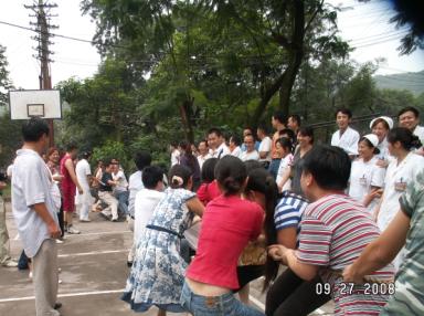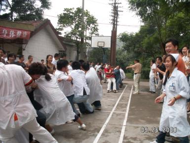 27日下午,为迎接十·一国庆节的到来,我院在马冲口院本部组织了一场别开生面的拔河比赛运动。此次活动共有行政、内科、外科等六个小组参加,活动产生了一个一等奖,两个二等奖和三个三等奖,内科最终夺得了桂冠,活动在紧张激烈的气氛中结束。据悉,为迎接国庆节的到来,医院还组织了桥牌比赛等多种形式的庆祝活动。据该活动的负责人表示,此类活动不仅能锻炼员工们的身体素质,丰富大家的业余生活还能陶冶情操,培养大家的积极性和集体荣誉感。为促进医院文化建设,对外展示中医院和中医院人的形象,医院会尽可能多举办相关的文娱活动。