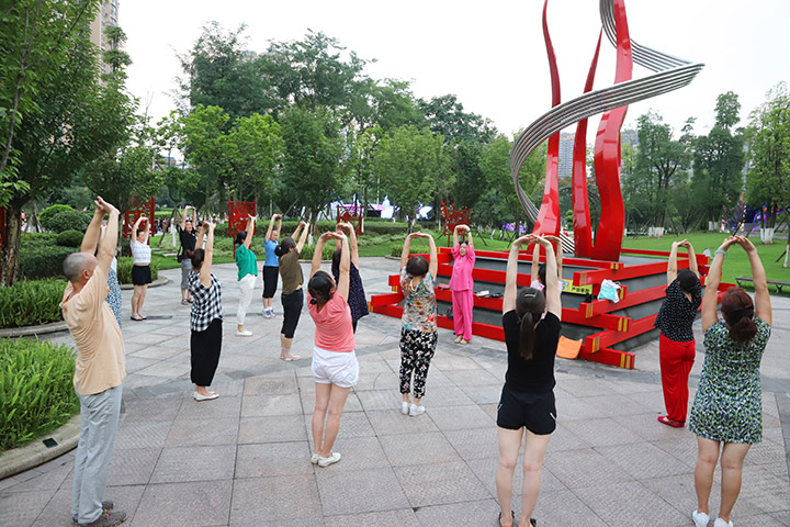 “早就听说李老师会八段锦、太极拳还有易筋经,都是很好的养生操,一直都想跟她学,她平时又忙,根本没得机会教的,这次免费教大家,咋子可能不来!”伍阿姨是李传芬的同学,看见了李传芬主任朋友圈里发布的消息,便准时到了场,“动作不难,学起来比较容易,就是(自己)平时疏于锻炼,做得不规范,还要多加练习。”